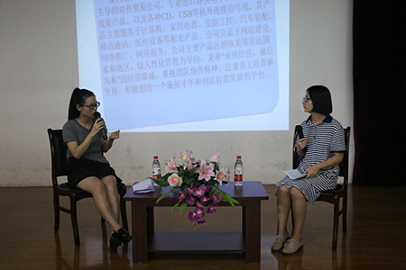 骆翠苗介绍自己的事业概况,分享了考证经验、工作经验和创业经验。在谈及创业经验时,她认为抓住契机是创业成功的重要条件,建议大学生不应当盲目地去创业,而是应该以良好的工作经验为基础进行。同时,她从创业者应有的素质,公司运行初期的编制等方面介绍创业成功的因素。最后,她鼓励同学们应善于抓住各个方面的机遇,锻炼和提高自我。