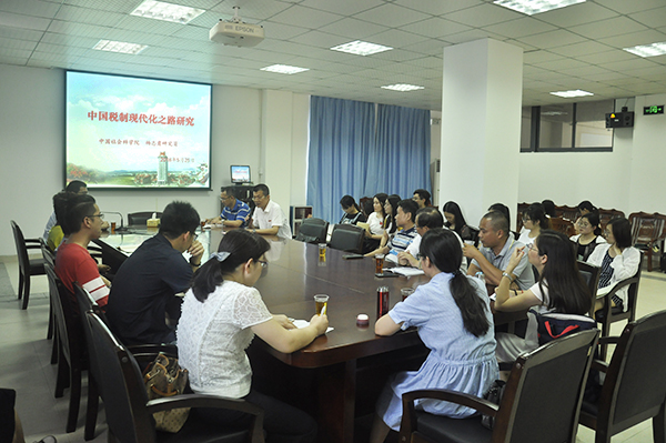 5月25日下午,财经学院在财经专业实验教学中心二楼报告厅举办嘉庚财经讲坛之教授论坛第三十期。中国社会科学院财经战略研究院杨志勇研究员应邀主讲,论坛主题为“中国税制现代化研究”,院长梁新潮、相关教师、研究生参加了论坛。