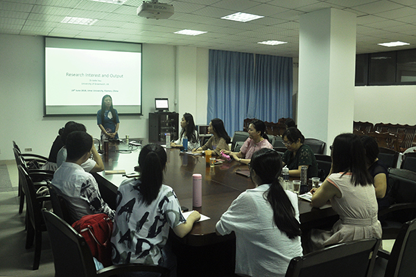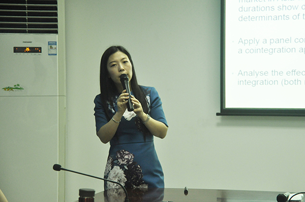 论坛上,尤克菲从六个不同的角度对亚洲金融一体化进行了全方位分析,她记录了亚洲金融一体化过程中各阶段的不同变化,并以此为基础深入分析了近年来亚洲一体化的发展进程和仍然存在的问题。尤克菲以一篇关于亚洲金融一体化的文章为例向在场师生展示了其采集数据整合、构建模型演算等研究方法。随后,在场师生就尤克菲的研究方法进行了深入研讨交流,充分学习了尤克菲的研究方法。
