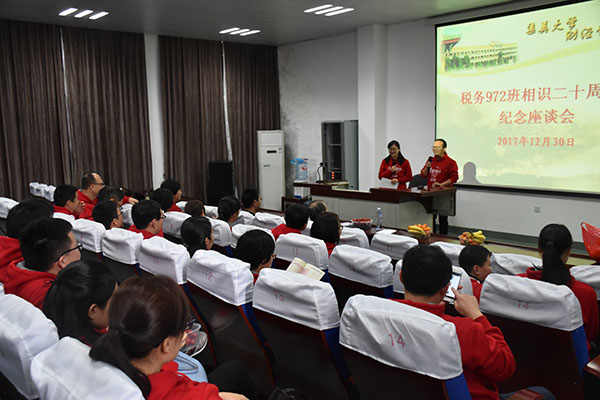 12月30日下午,财经学院于财媒体三楼举办了税务972班相识二十周年纪念座谈会,财经学院党委书记周邵生,相关老师和校友参加了座谈会。