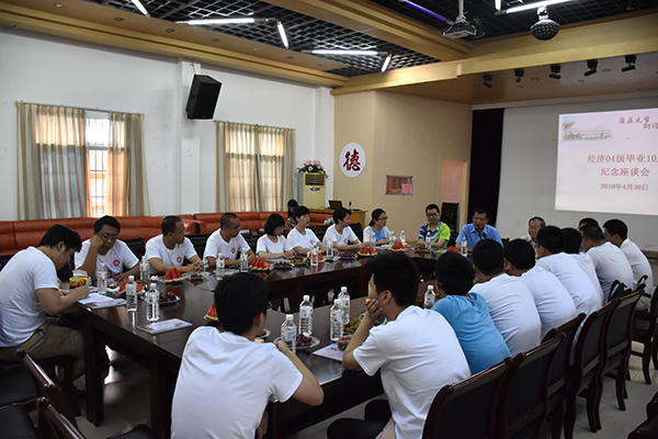 4月30日下午,财经学院在办公楼二楼多功能厅举办经济08届学生毕业十周年纪念座谈会。财经学院院长梁新潮、院党委书记周邵生、副院长黄阳平、相关老师及校友参加了座谈会。